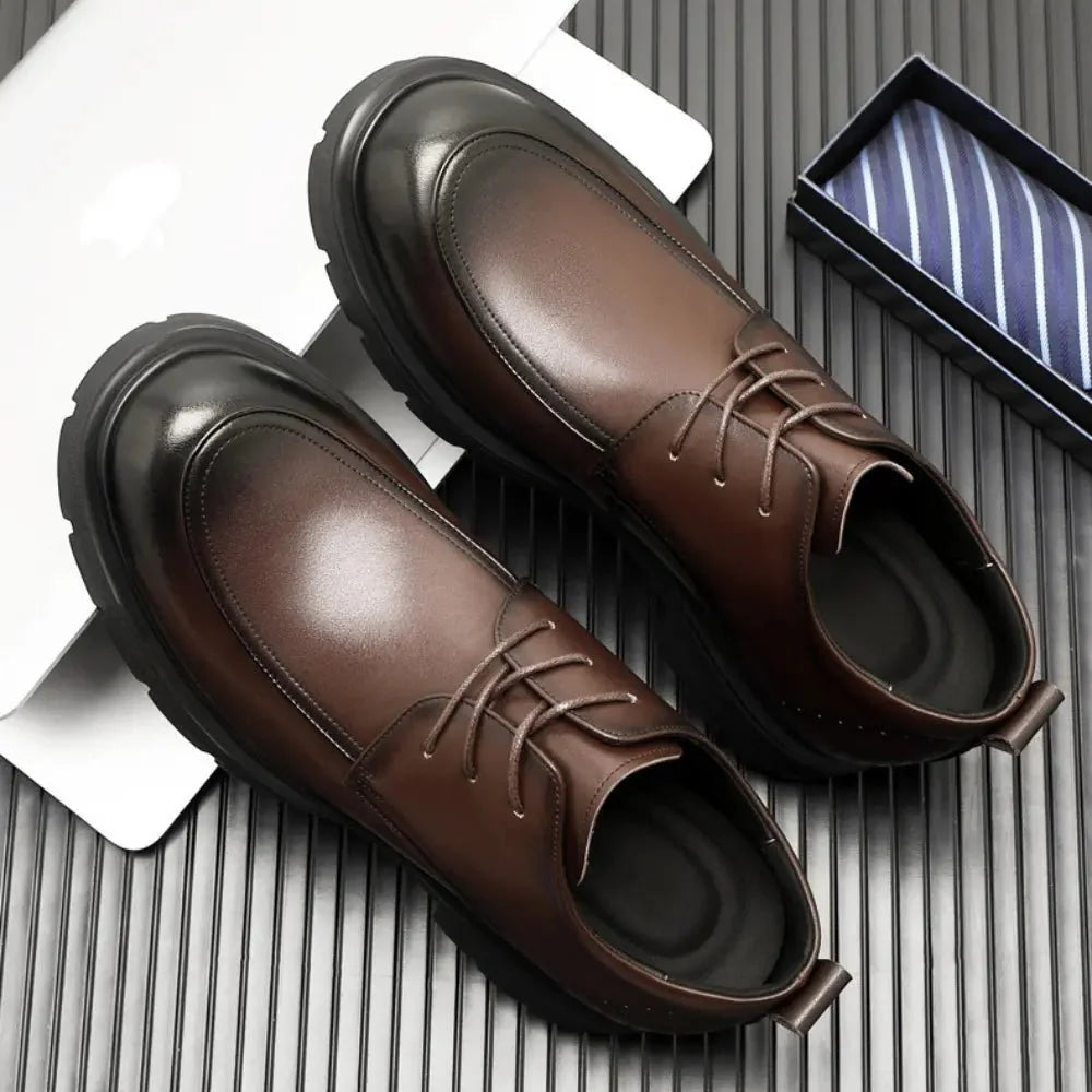 A distinguished formal shoe crafted from premium leather, available in classic brown and black. With an 8cm (3" inches) height boost, Regent seamlessly combines sophistication and subtle elevation. Its sleek design is tailored for formal occasions, ensuring an elegant and commanding presence. The Regent embodies timeless style and refined luxury, perfect for those who appreciate understated excellence.