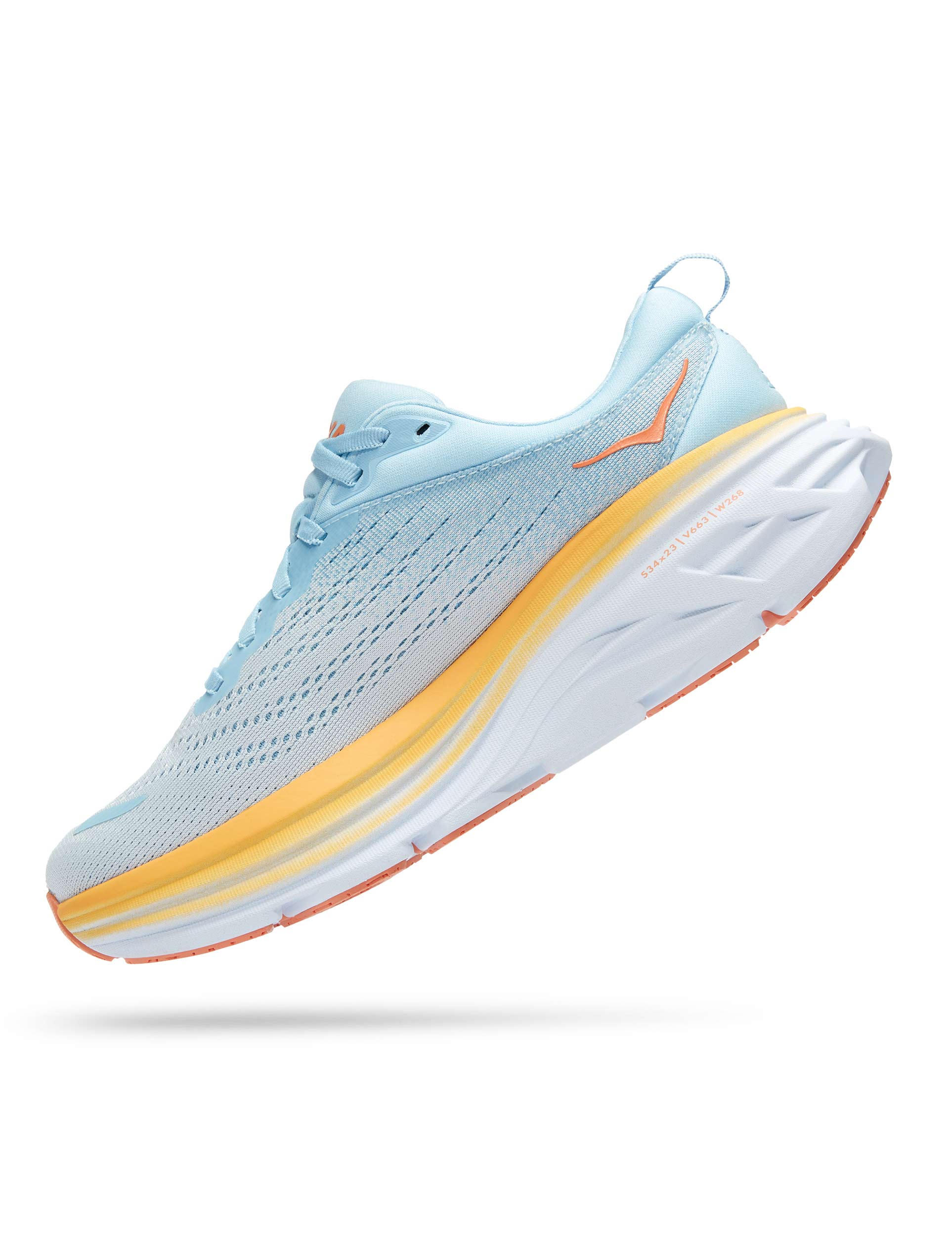 Bondi er en av de mest slitesterke skoene i kolleksjonen, og denne sesongen tar den et dristig steg fremover med mykere, lettere skum og en helt ny, utvidet hælgeometri. Dempingen bak har en rullende effekt, som gir en utrolig jevn og balansert overgang fra hæl til forfot.